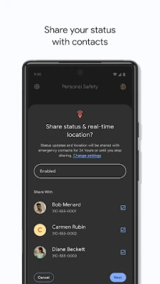 آپ کے فون پر، ہنگامی ایس او ایس فنکشن صرف چند فوری کلکس کے ساتھ مدد طلب کرنے کی سہولت دیتا ہے۔ پاور بٹن کو تیزی سے پانچ یا اس سے زیادہ بار دبانے سے، آپ فوری طور پر ہنگامی خدمات سے رابطہ قائم کر سکتے ہیں یا اپنی منتخب کردہ کسی بھی نمبر پر کال کر سکتے ہیں۔ اس کے ساتھ ہی، یہ آپ کا اصل وقت کا مقام اور اہم معلومات آپ کے ہنگامی رابطوں کے ساتھ شیئر کرتا ہے، اور ایک ویڈیو ریکارڈ، بیک اپ اور شیئر بھی کر سکتا ہے۔ ایمرجنسی شیئرنگ کے ذریعے، آپ اپنی لائیو لوکیشن اور ذاتی تفصیلات اپنے منتخب کردہ رابطوں کو ارسال کر سکتے ہیں، یہاں تک کہ گوگل اسسٹنٹ کے ساتھ بھی۔ سیفٹی چیک ایک منفرد خصوصیت ہے جہاں آپ اپنے فون کے لیے ایک چیک اِن ٹائمر سیٹ کرتے ہیں۔ اگر آپ مقررہ وقت پر جواب نہیں دیتے، تو ایمرجنسی شیئرنگ خود بخود شروع ہو جاتی ہے، یہ بھی گوگل اسسٹنٹ کے ذریعے ممکن ہے۔ پکسل فونز کے لیے، کار کریش ڈیٹیکشن نامی خصوصیت ایک حادثے کی صورت میں خود بخود ہنگامی خدمات کو مطلع کر سکتی ہے، جو ضرورت کے وقت فوری امداد کو یقینی بناتی ہے۔